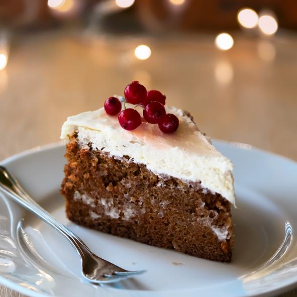 - Vispa smör, flor- och vaniljsocker krämigt. Vispa i cream cheese. Bred ut frostingen på kakan och garnera med lingon.