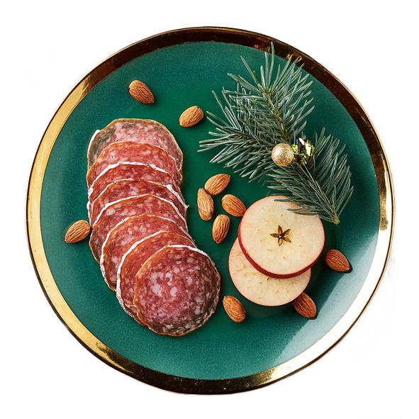 Julespegepølse med snaps, mandler og æbler