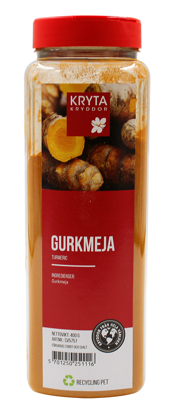 Gurkmeja är en krydda som oftast används för att färga mat. Den har en lätt bitter smak och används flitigt i indisk matlagning.