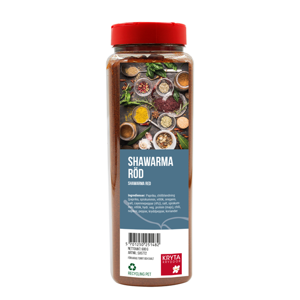 Stark kryddblandning till shawarma med bl.a. chilipulver, spiskummin, koriander och vitlök.