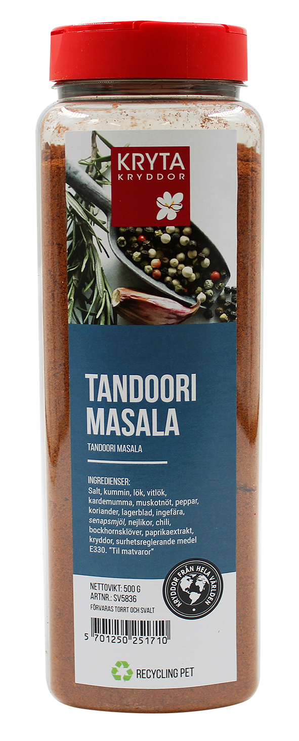 Tandoori Masala är en lätt kryddig blandning med bland annat paprika och koriander. Används i asiatiska rätter.